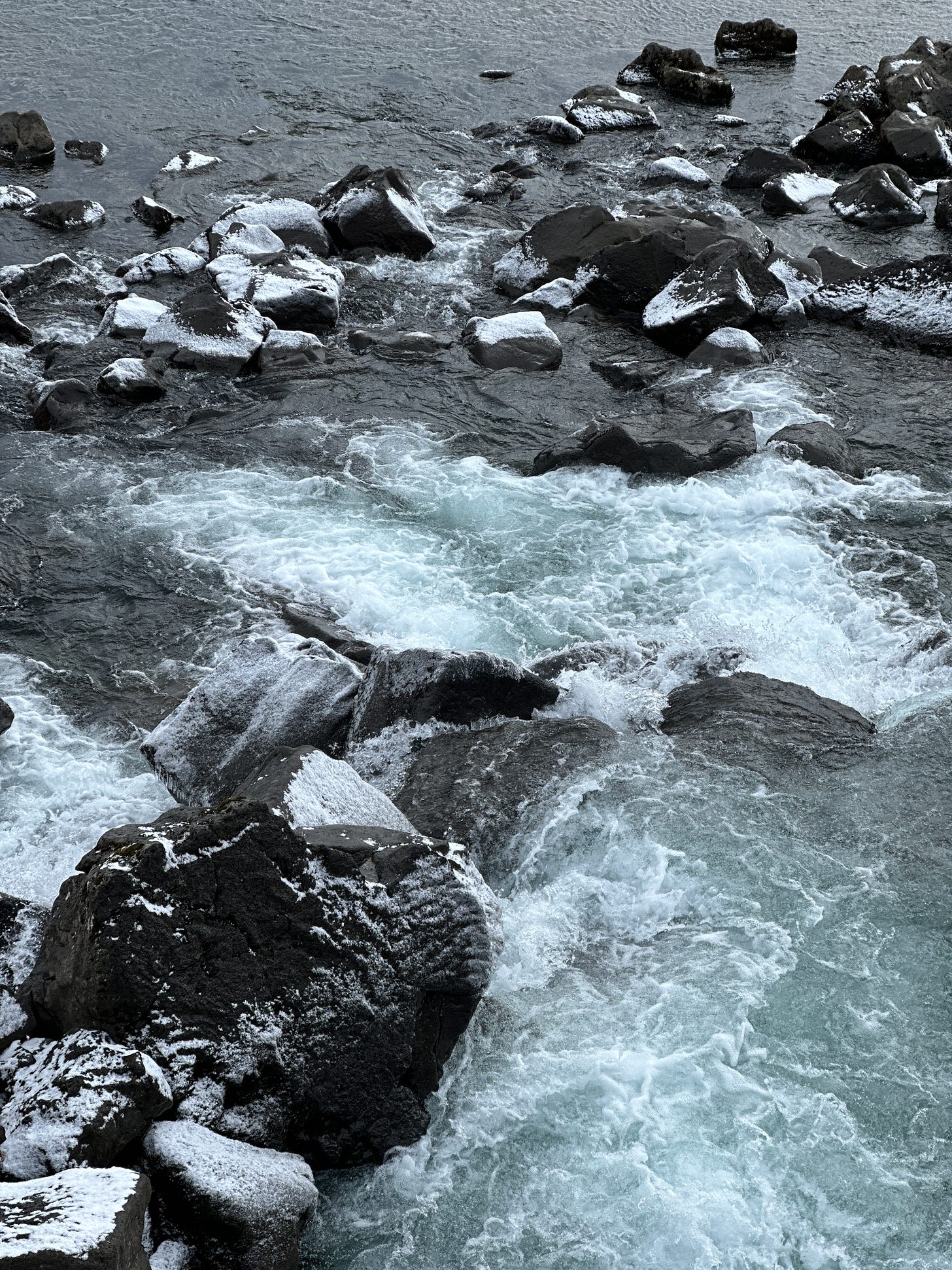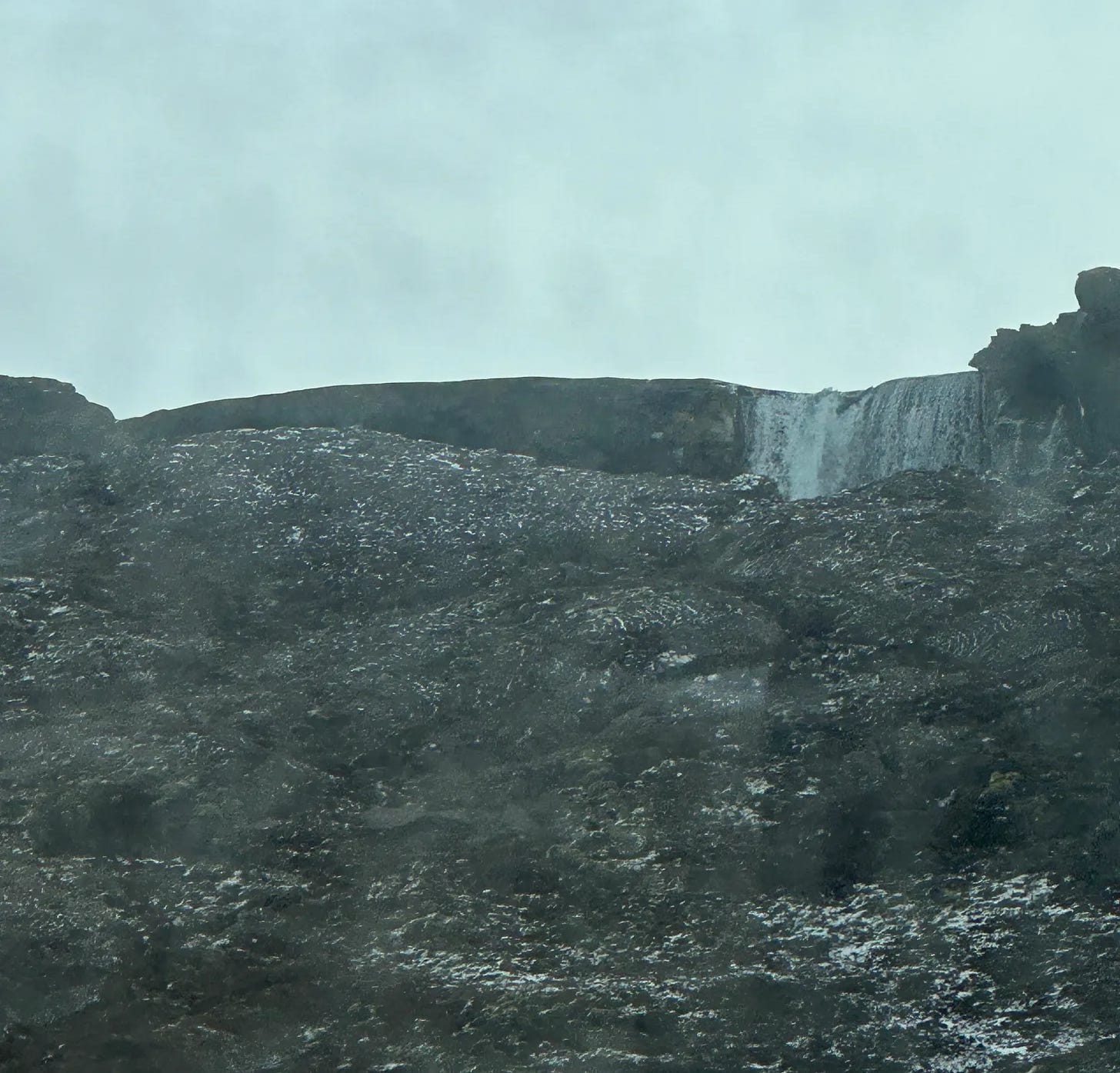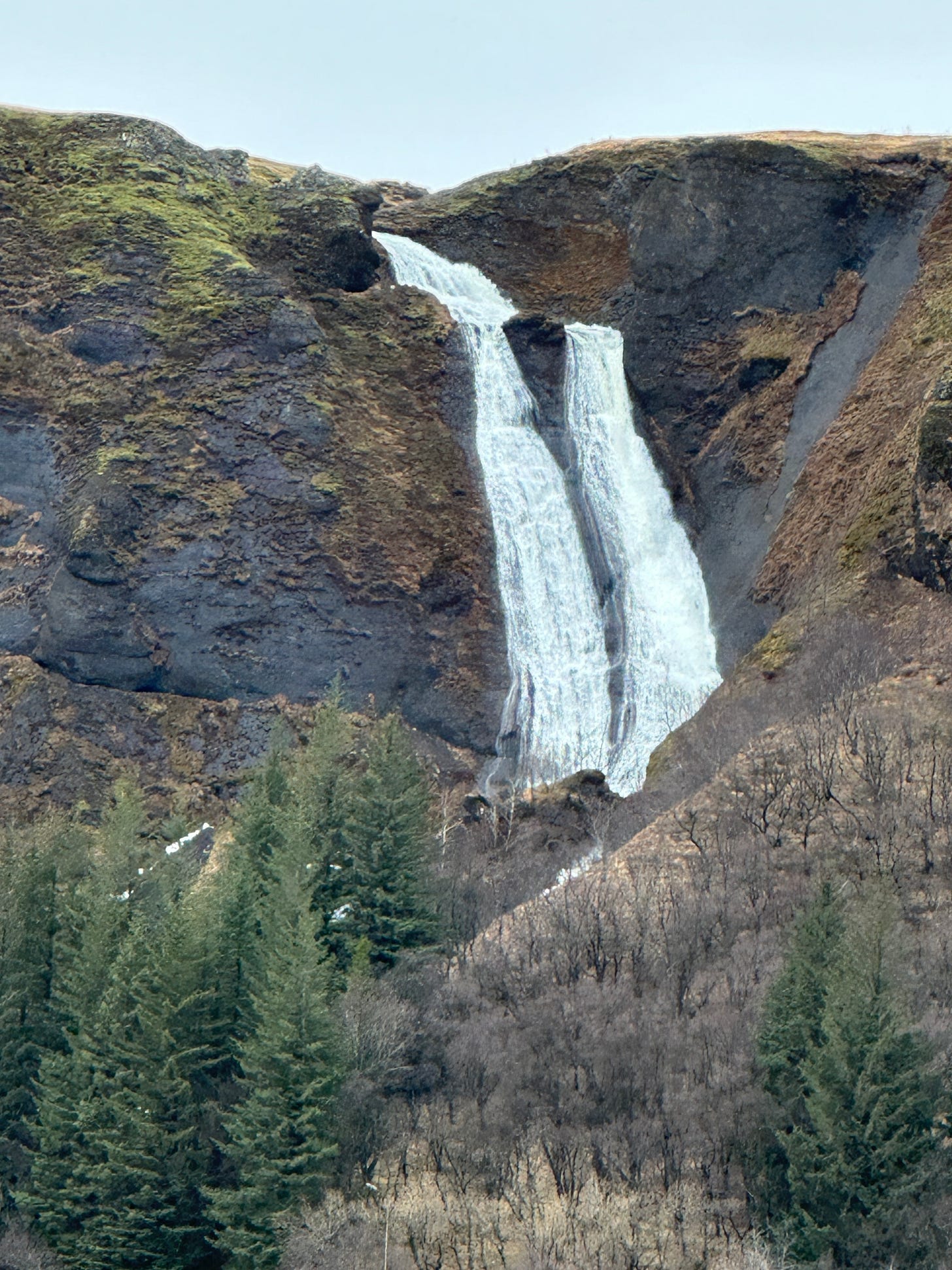 The best thing about this foss is that you can walk behind through a cave area. Wear crampons or spikes and plan on getting wet. It was a bit treacherous boulder climbing briefly on the path with the snow, rain, and wind wearing thick ski clothes, but I think the view from behind was worth it!