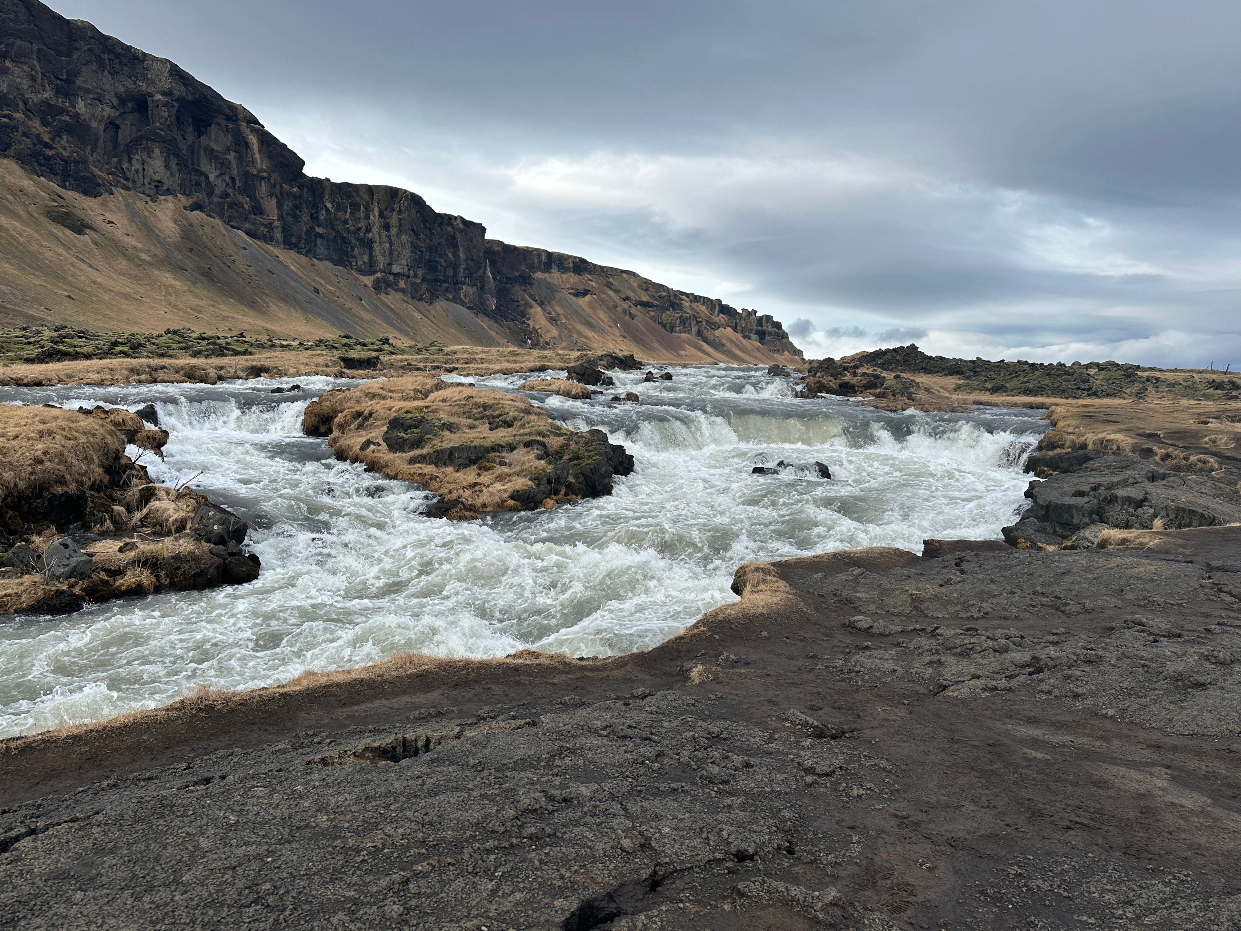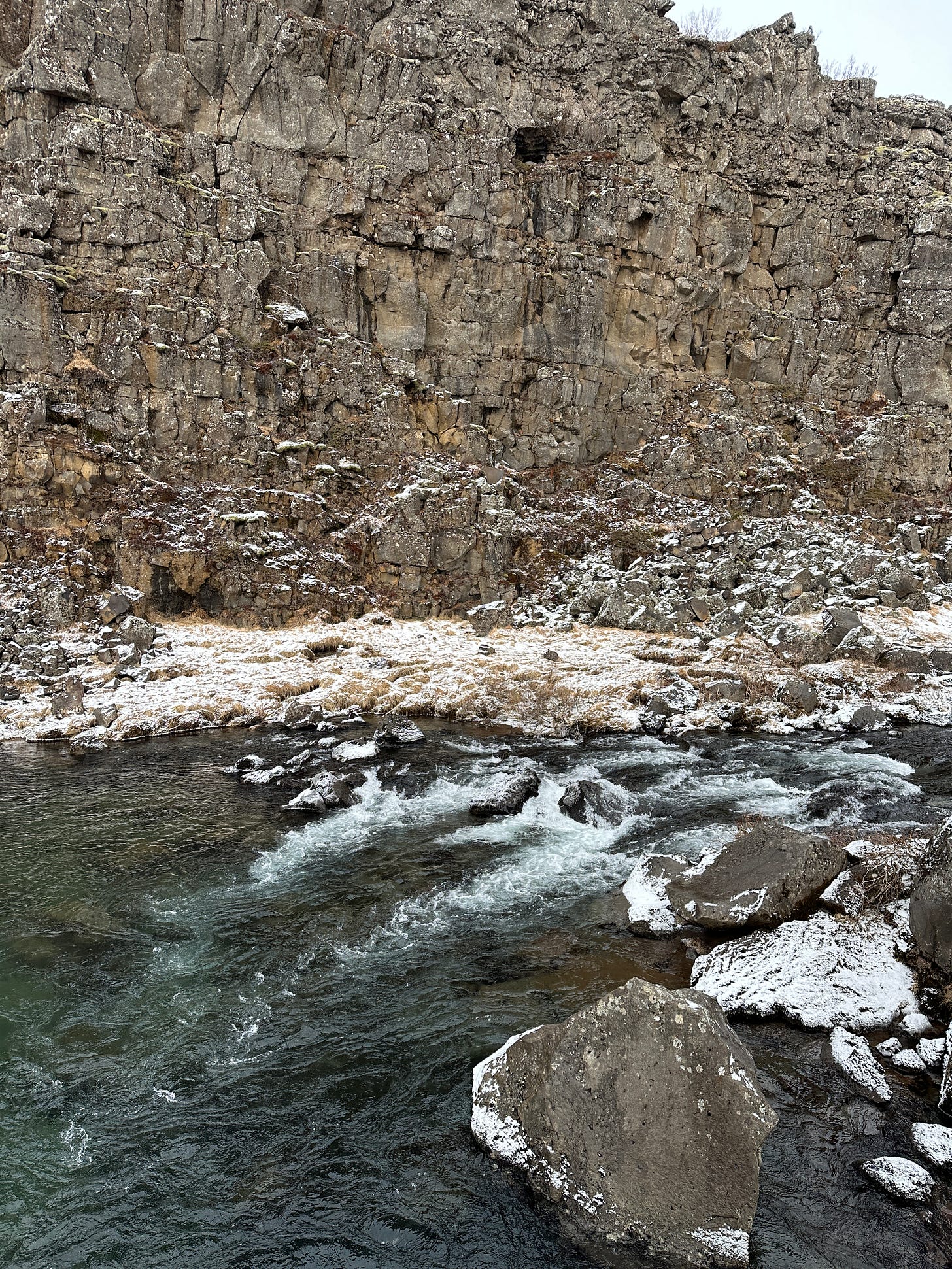 While walking through the canyon, we found Drekkingarhylur, also known as the “Drowning Pool”. Women who were found guilty of certain crimes were executed in the cascades as punishment. There is a top level of cascades, that flows down rocks into a larger pool at the bottom. It is a lovely and peaceful place, even with the dark history.