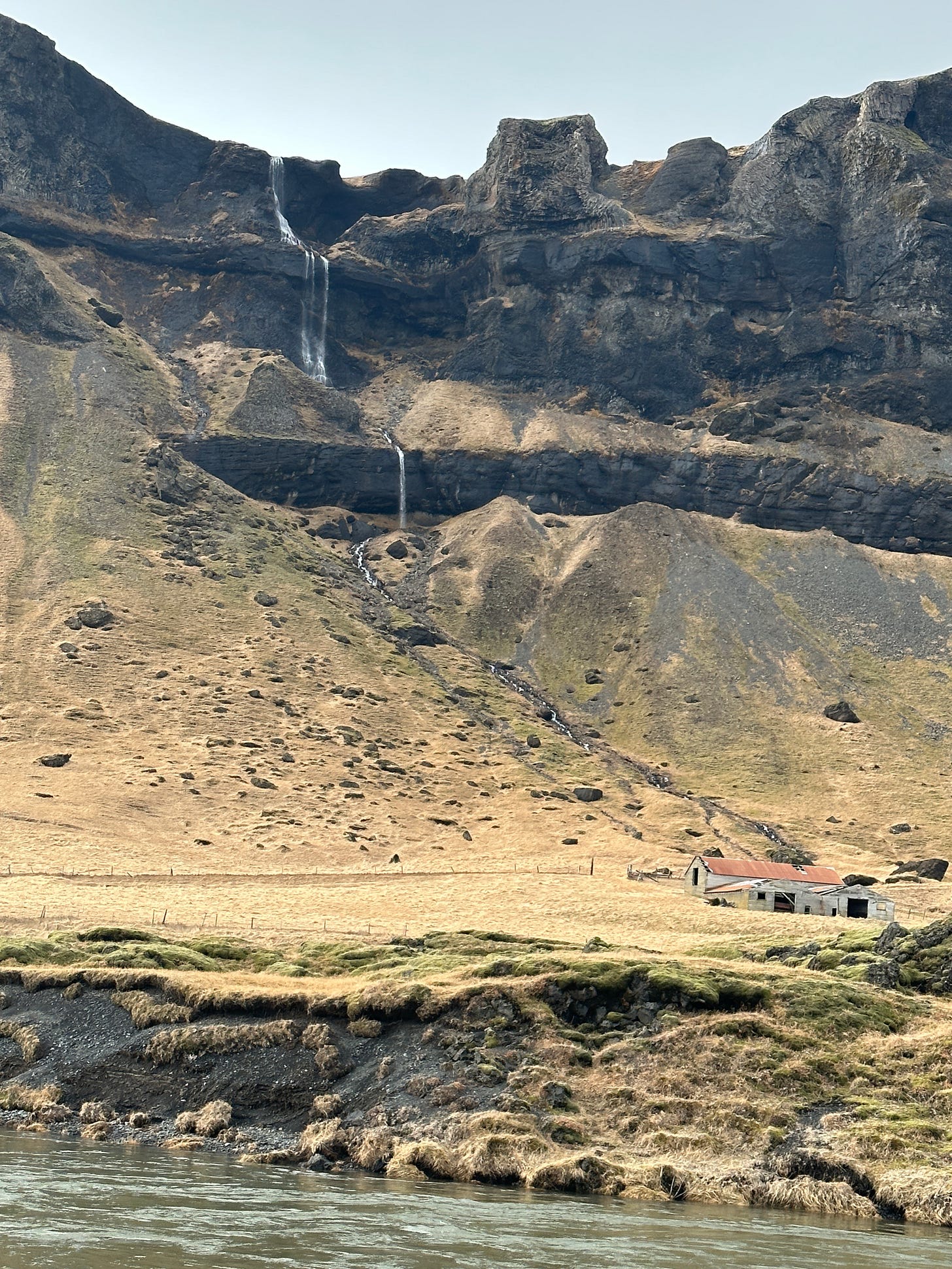 Coming off the cliffs behind the Vatnajokull National Park visitor center, another UNESCO World Heritage site, is Systrafoss (Sisters Falls). It is named for a Benedictine convent that used to be close by in 1180AD. The double cascades are not always visible, and the best time to see these 200 ft plus beauties is early spring to late summer. This was an unexpected treat.